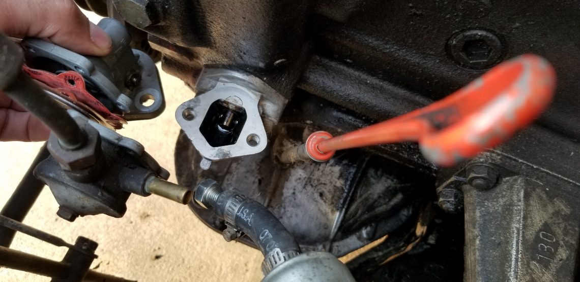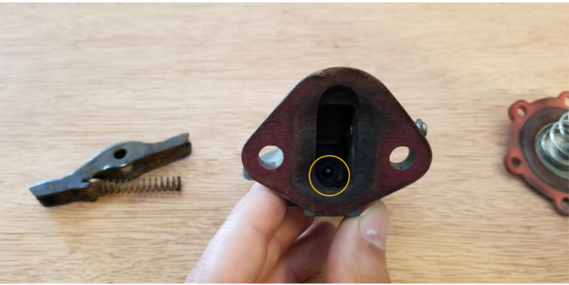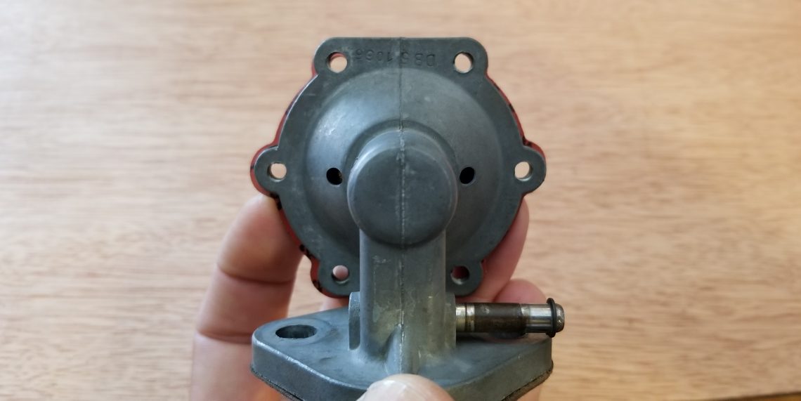 In normal operation the fuel enters and leaves from the same side of the pump. The holes worn through the diaphragm however were allowing the fuel to spill out the backside of the pump casing and out the weep holes and onto the hot engine clearly a dangerous situation.