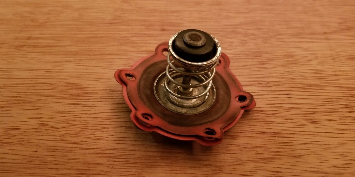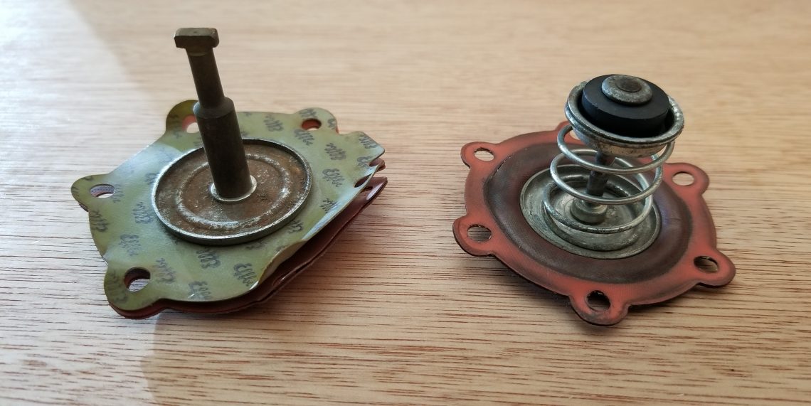 Our revised approach involves disassembling the Fiat part, and using the diaphragm material on the Fintail pump. At this point you might be saying, “But wait, didn’t you say the Mercedes part didn’t disassemble?”
