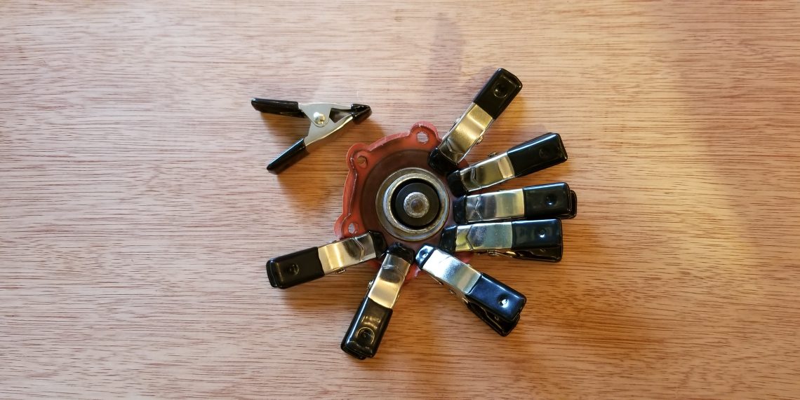 After a couple days of glue, clamp, and repeat the finicky job of gluing the two diaphragms together was complete. It looks promising folks! That said, we have a new mechanical pump in transit. While we aren’t thrilled with the replacement (more on that when it shows up) we found it much cheaper than that we first sourced. If nothing else the replacement will serve as good research.